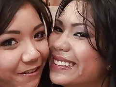 Threesomes - Dua gadis tersedak turun satu lemak ayam, threesomes panas